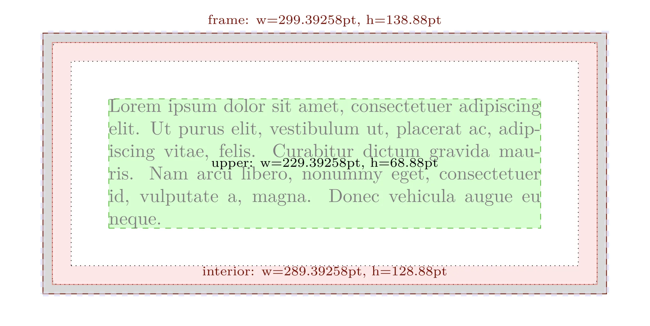 draftオプションを指定していない通常の表示と見比べると、通常の表示では、グレーの領域に枠線の色が適用され、グレーより内側の領域すべて(ピンク色の領域、白い領域、緑色の領域)に背景色が適用されることがわかります。